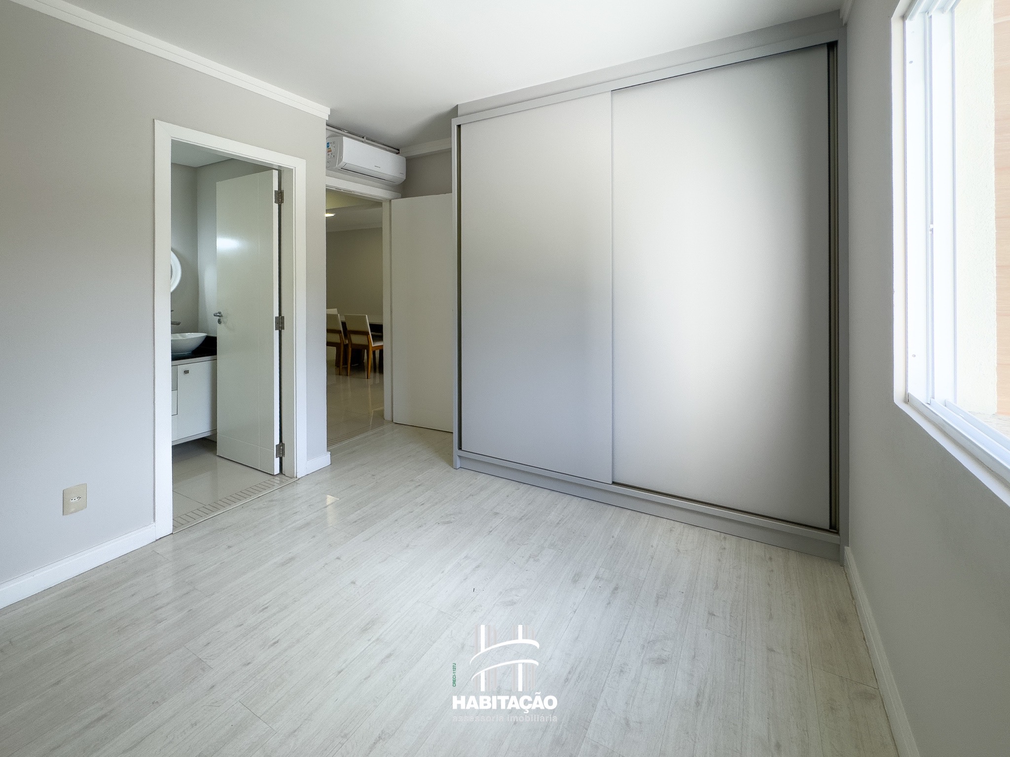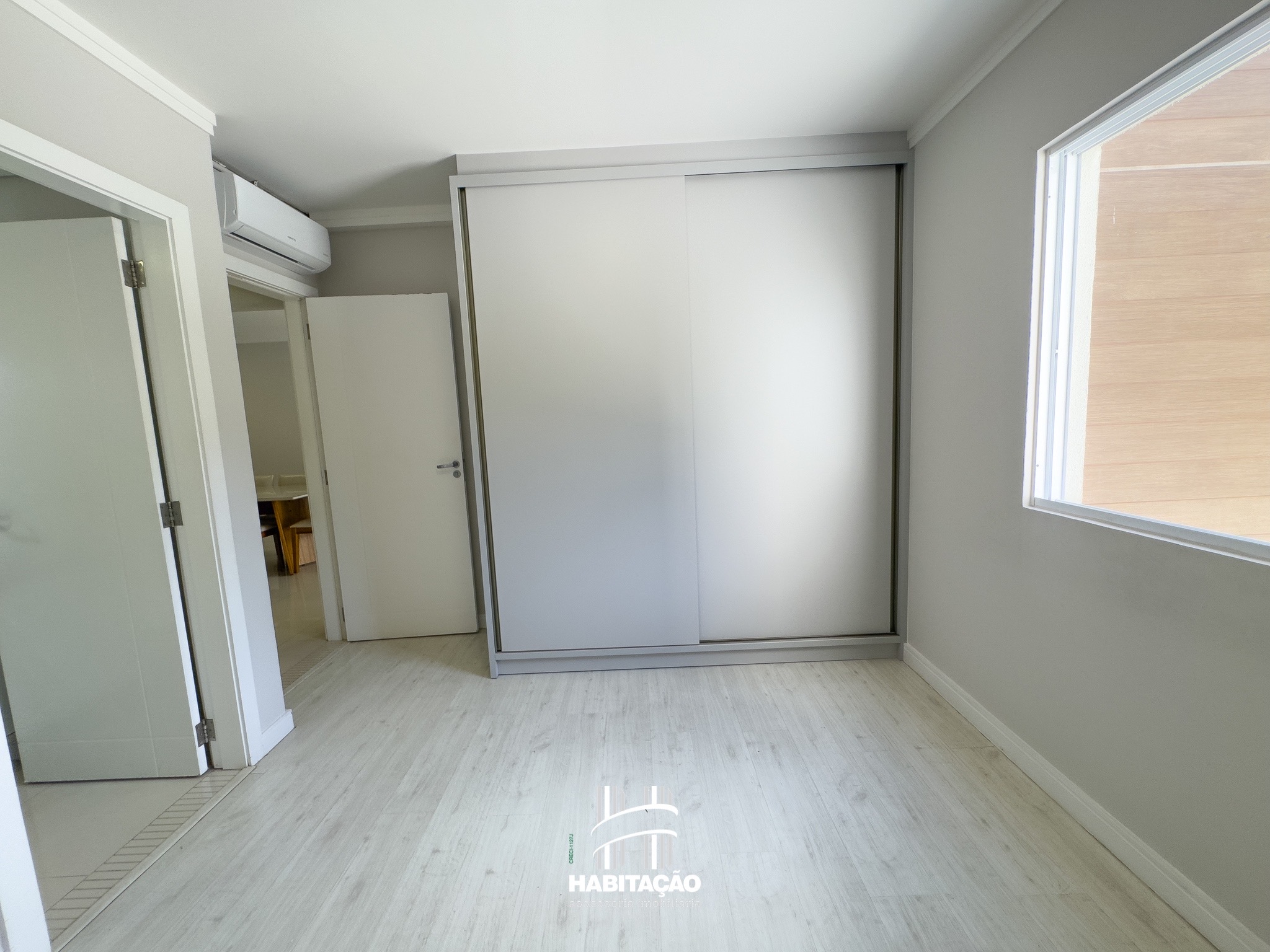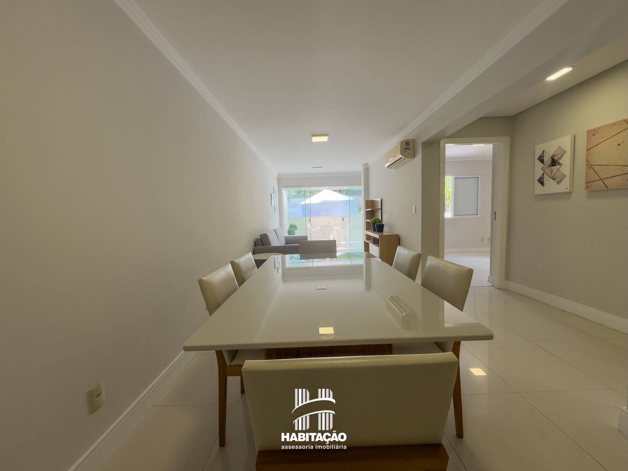 Com 2 dormitórios, sendo 1 suíte, o apartamento apresenta uma planta bem distribuída, com excelente iluminação e ventilação natural. A sala de estar e jantar integradas, já equipada com ar-condicionado, cria um ambiente amplo e aconchegante para o dia a dia.